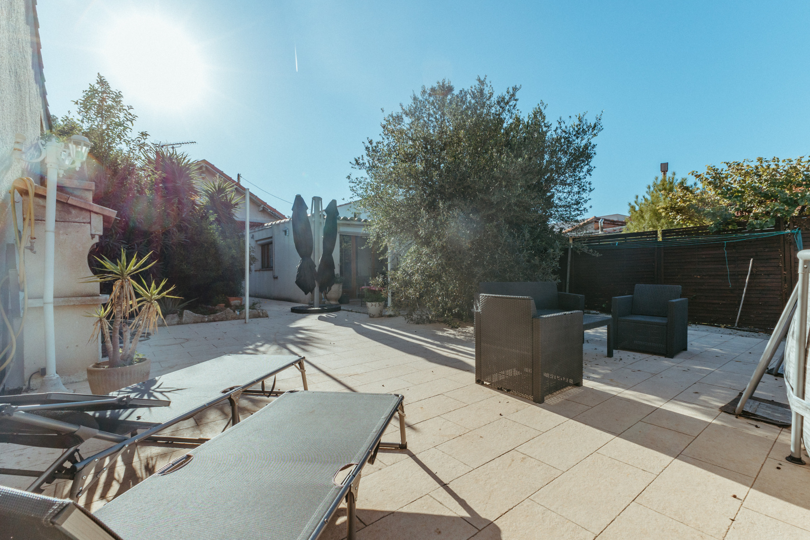 SEVEN70 Immobilier vous invite à découvrir: Dans le trés prisé Ancien Chemin de Cassis dans le quartier du Cabot, au calme mais à proximité de toutes les commodités, une maison non mitoyenne de plein pied de 78m2 sur une parcelle de 405m2. Cette maison est dotée d'un portail électrique qui s'ouvre sur une terrasse pouvant accueillir 2 voitures. La maison se compose d'un séjour , d'une cuisine équipée et spacieuse, de deux chambres ainsi que d'une salle de bains avec douche à l'italienne récente. Le séjour et la cuisine sont climatisés, la maison est équipée de fenêtres double vitrages. Une mise au gout du jour peut être envisagée. une extension n'est pas possble. Le séjour et la cuisine s'ouvre à l'arrière de la maison sur une terrasse et un jardin arboré, calme et piscinable.